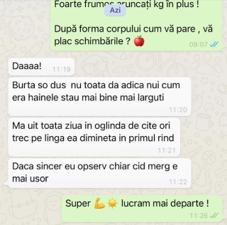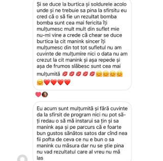 Mă simt fericită că am reușit să ajuts peste 450 de oameni să își obțină o siluetă de invidiat, să își îmbunătățească starea de sănătate și să rezolve probleme cronice de sănătate.
