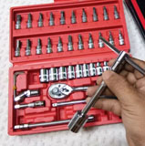 Un set de instrumente ar trebui să fie în arsenalul oricărui om. Acesta vine cu un clichet, o șurubelniță și o varietate de biți și mufe diferite. Setul conține o cutie de depozitare rezistentă, ceea ce ușurează transportul instrumentelor.